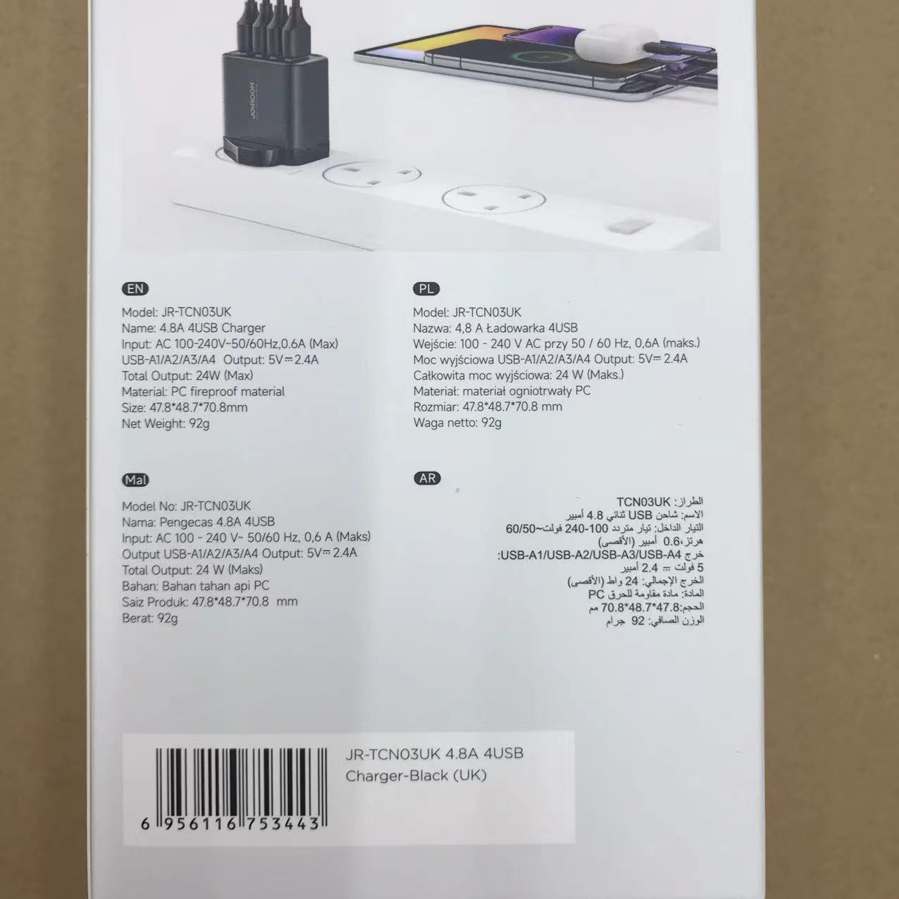 JOYROOM TCN03 24W 4USB充電器 充電器/火牛