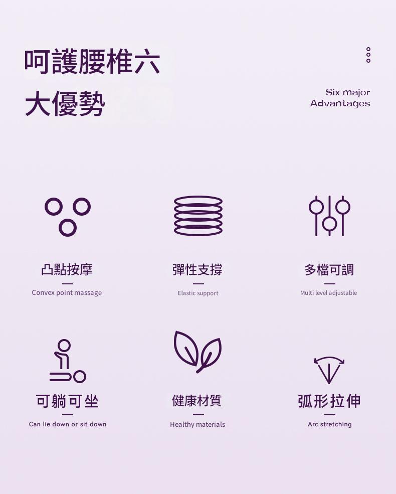 凸點按摩 彈性支撐 多檔可調 可躺可坐 健康材質 弧形拉伸