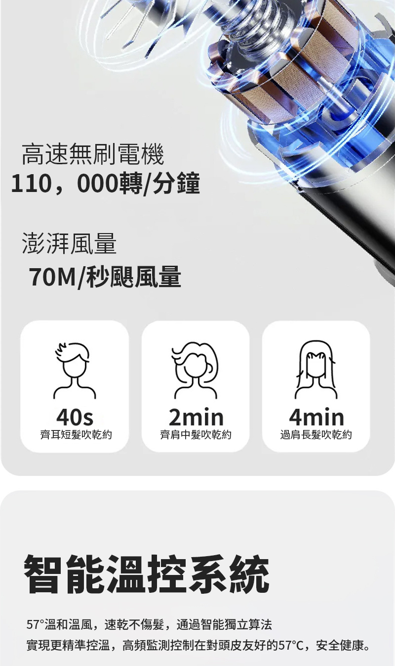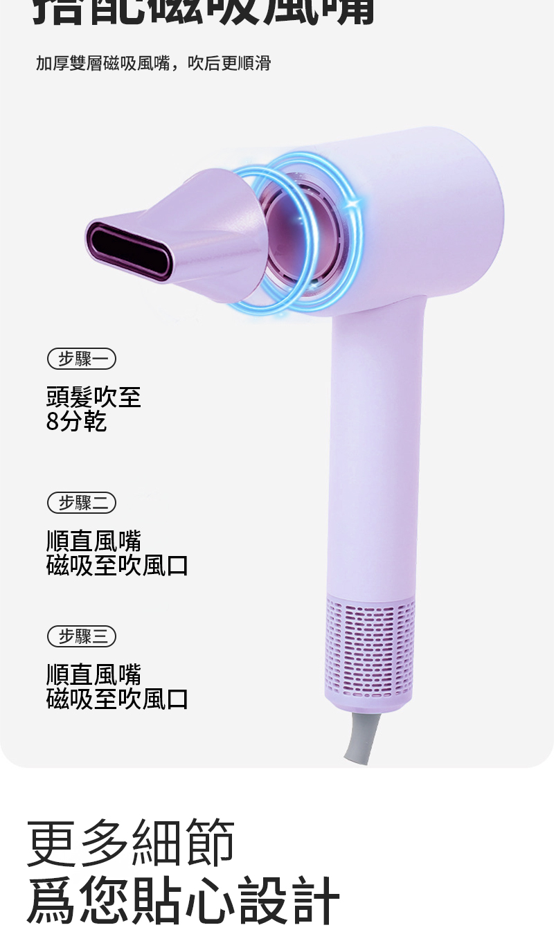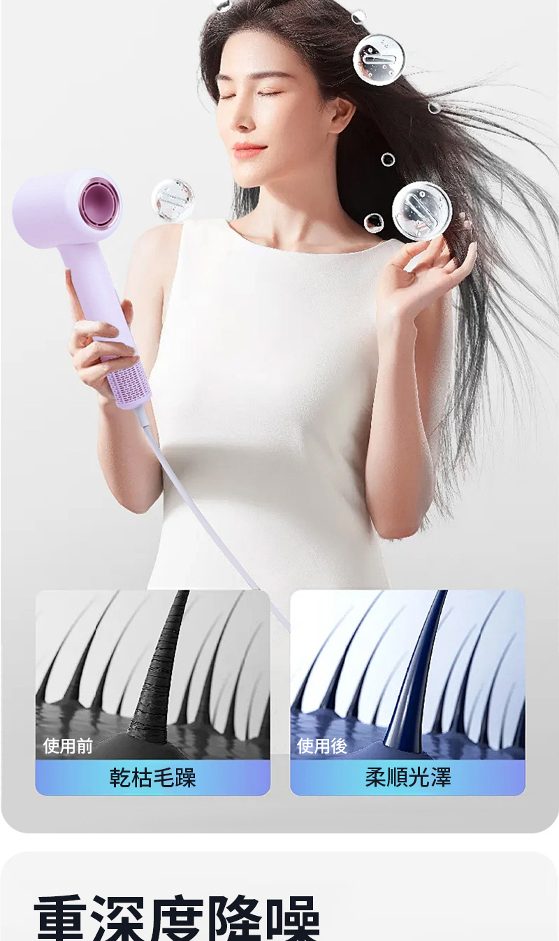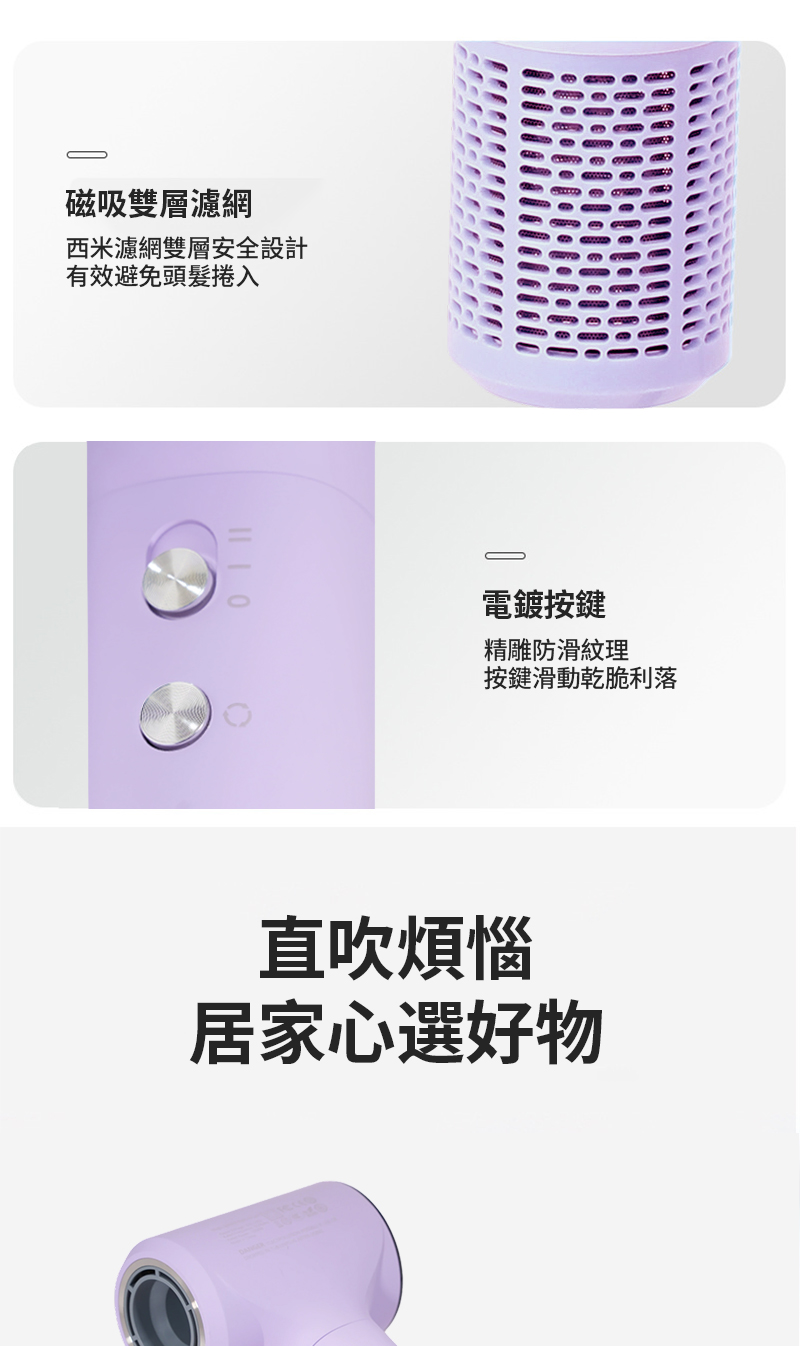 便攜性強 乾髮速度快 護髮效果好 操作簡單安全 外觀設計美觀 噪音控制良好