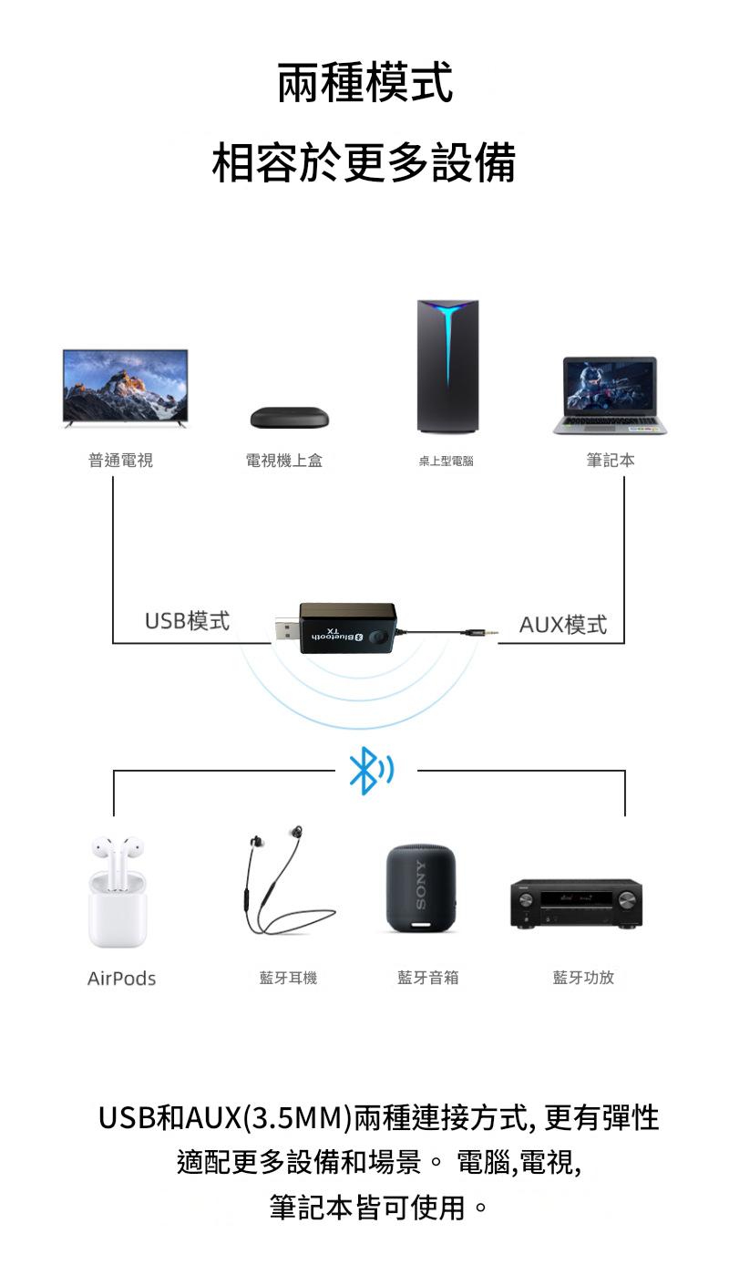 便捷易用 广泛兼容性 优质音频传输 无线自由 小巧便携 多设备连接
